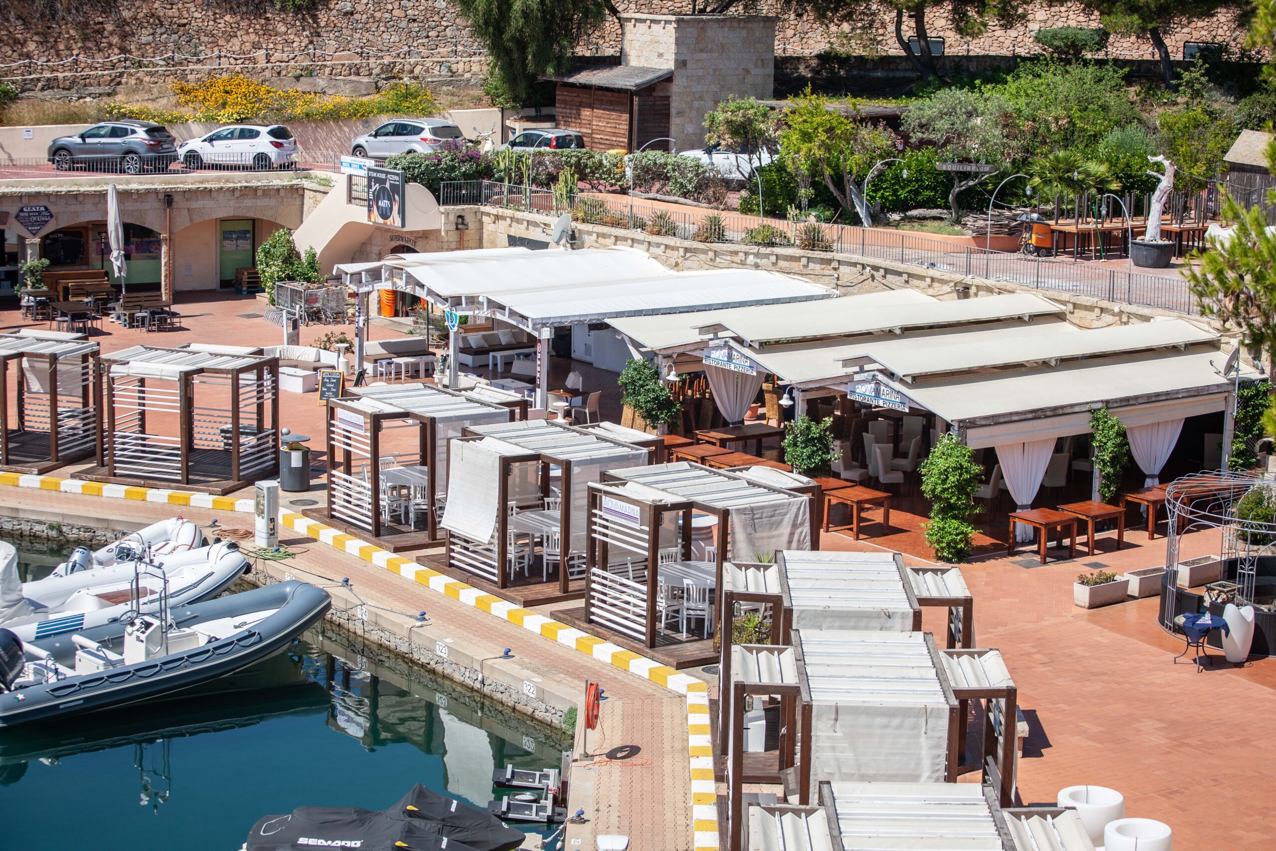 Protected by a long external breakwater and surrounded by crystal clear waters, the Marina features shops, restaurants and bars, supplies delivered directly to the boats and excellent security.